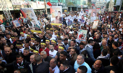 | Palestinian demonstrators in Nablus supporting the hunger strikers |