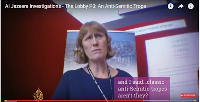 We share the delight of Joan Ryan MP, Chair of Labour Friends of Israel, when Masot tells her he has more than £1 million from Israel needed to fund trips to Israel by influential Labour MPs. We share her fury when a conference delegate persistently asks her how a 2-state solution can work – persistently because her interlocuter is dissatisfied with the non-answers she is getting. Ryan then persuades herself that the questioner has indulged in an antisemitic trope (about Jews working for banks – which we can see is Ryan’s own subconscious interpolation of material that wasn’t said). Ryan makes a complaint; the delegate is suspended from party membership.