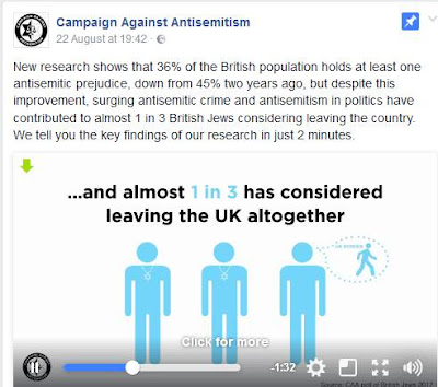 The Community Security Trust is a thoroughly Zionist organisation and as I have shownis happy to hype and inflate the amount of genuine anti-Semitism in Britain.  Their Anti-Semitism Incidents Report for January-June 2017 shows a ludicrous increase of 30% in anti-Semitic hate crime in the last year.