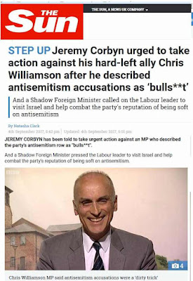 I am though interested to know what Smeeth means by ‘our cause’. It’s not socialism she is talking about! She is talking about the cause of Zionism i.e. Israel inside the Labour Party. Suffice to say that well-known anti-racist paper The Sun got into the act. [Jeremy Corbyn urged to take action against his hard-left ally Chris Williamson after he described antisemitism accusations as ‘bulls**t] Even the Sun opposes 'antiSemitism'!!