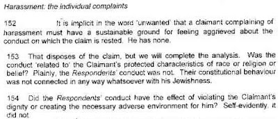 Despite my doubts as to whether ‘Jewishness’ counts as a protected characteristic, doubts which the tribunal seem to share, the section of the tribunal judgment that caused most grief to the Zionists was para. 150 where they found that