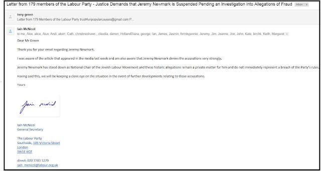 Barely a week ago McNicol was refusing to suspend Jeremy Newmark, the former Chair of the Jewish Labour Movement for having allegedly stolen tens of thousands of pounds from a Jewish charity. In the last few days we have learnt that the JLM, which had been confident that Newmark hadn't trousered their funds, has now referred matters to the Police. We can only assume that the JLM, which was swimming around in Israeli funds to help it destabilise the Labour Party, has also discovered that Newmark has trousered some of their ill gotten gains. Yet McNicol refused to suspend his Zionist friend.