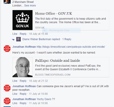 Now living near Ilford, Collier was born in the UK in the 1960’s and spent 19 years in Israel between 1987 and 2006. Collier claims to have run his own tourism-related business there but is remarkably reticent on why he had to leave Israel although he professes a great love for the settler state. Oddly, for whatever reason, it appears he has not returned there in recent years.