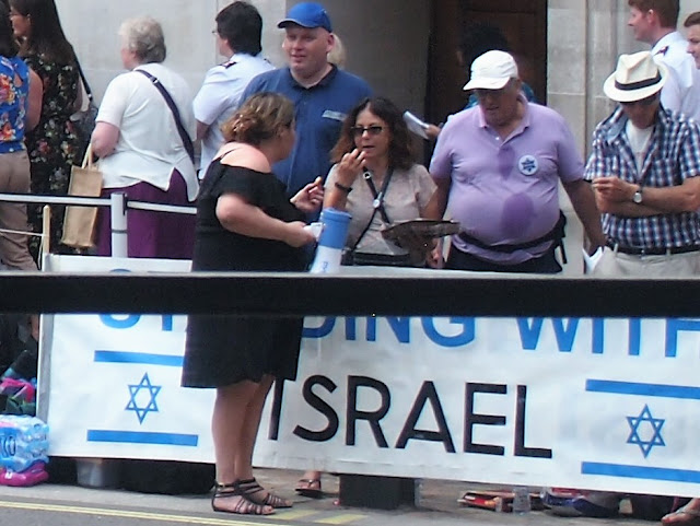 When I saw this video of Hoffman screaming 'you're a liar' at the InMinds Protesters who successfully disrupted an Israeli Tourism Stunt involving free ice creams at Bloomsbury Square I realised that he is mentally ill. Mental illness doesn't excuse Hoffman's racism but it helps us understand his actions. If Hoffman had any self awareness he would recognise that anyone watching him would have been put off by his actions - as I understand was indeed the case with members of the public. Hoffman is a one man illustration of all that is wrong with the Zionist state. Yet he continued, as if slights against Israel were a matter of life and death.