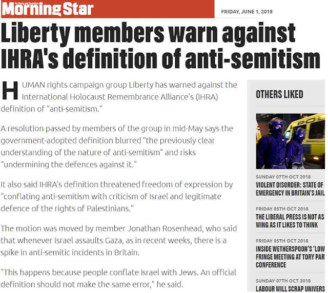 The IHRA is being used and has already been used in this country to close down debate on Palestine. It has nothing to do with anti-Semitism. If free speech is not a concern of Liberty then what is the purpose of the organisation?