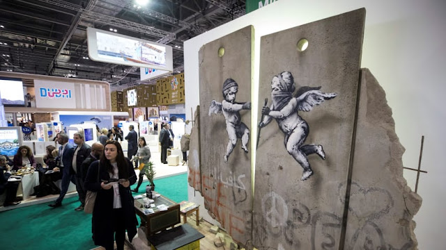 Palestinian Tourism Minister Rula Maayah, who has credited Banksy for driving younger people to visit the West Bank, praised the artist’s help at the trade show this week for promoting "Palestine and [focusing] on the occupation, but at the same time … talking about the beauty of Palestine.”