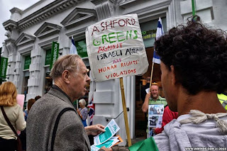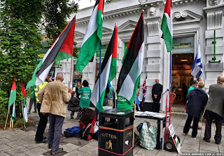 The Christians are part of a tiny but virulently anti-Semitic sect within the wider Christian church and the Zionists come from the far-Right of the Jewish community. At least two Zionist demonstrators, including the leader of the counter-demonstrators, the thuggish Simon Cobbs is, as has been pointed out elsewhere on this blog, a supporter of the Jewish-Nazi group Kach (this description is not mine but that of fellow Zionists for whom imprisoning Arabs who have sexual relations with Jewish women is reminiscent of the racial ‘hygiene’ laws of Nazi Germany under which many Jews were executed. Like Nazi Germany Kach/Jewish Defence League does not seek to criminalise Arab (Jewish) women who have/had sex with Jewish/German men.