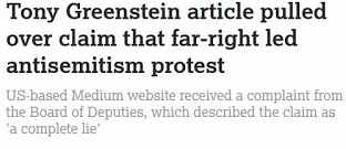 | One of many shock horror headlines from the Jewish News - anyone expelled from the Labour Party is an untouchable according to the Zionists |