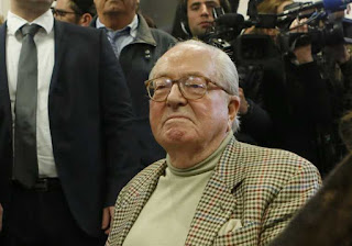 | Marine's old dad, Jean, is angry that he has brought up his daughter to be a good anti-Semite and now she's pretending that she loves Jews |