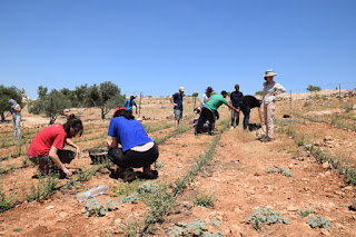 | All That’s Left activists planting working on the za’atar field in Susya, June 13, 2015. (Photo: Michael Schaeffer Omer-Man) |