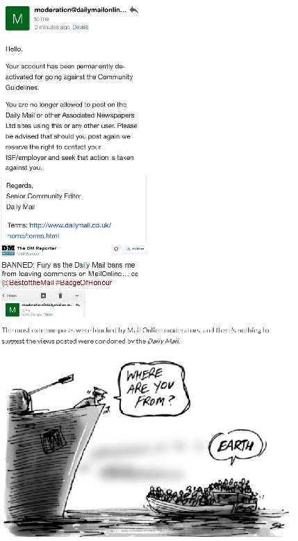 Mail Online later stopped @DMReporter from making further comments on its site for "going against the community guidelines".