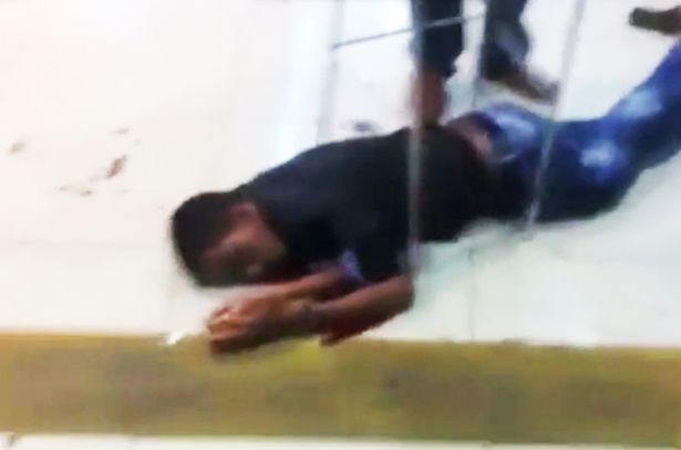 The shooting victim is then seen writhing on the floor in a similar position to the video showing Zarhum being attacked by the mob.