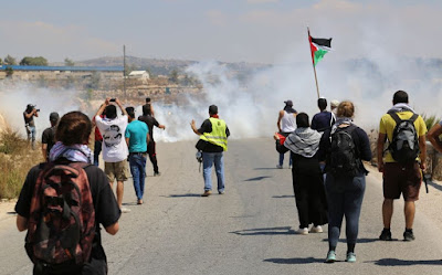 The Israeli town of Halamish, where some of the most vicious fanatic Israelis live, has taken much of Nabi Saleh land, including the small spring. But Officer Nasser El-Din is a fool if he thinks Palestinians in Nabi Saleh or any other village are putting their lives on the line for a spring, or a well or even a settlement here or there.