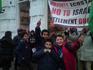 And to enliven proceedings this week a group of about 8 kids – about 12-14 in age – came along to demonstrate and shout in support of the Palestinians. This riled the Zionists even more as they accused us of 'brain washing'!!