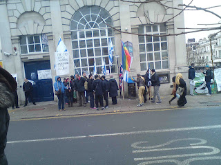What there has been is one conviction under the Public Order Act, where a passer-by (not an ‘anti-Israeli activist as the Jewish Chronicle has twice stated) was convicted of making a Nazi salute in the direction of the Zionist demonstration. Apparently someone else was also arrested for this today. It is to be hoped that s/he pleads not guilty because what was almost certainly intended was a form of satire, in other words irony. People see Jewish demonstrators in favour of ethnic cleansing [the Christian fundamentalists on the Zionist demonstration call the Palestinians who are being evicted and having their land stolen ‘occupiers’ - the Jews were there 3,500 years ago!] and people give a Nazi salute as if to say, you of all people should remember the evils of racism.