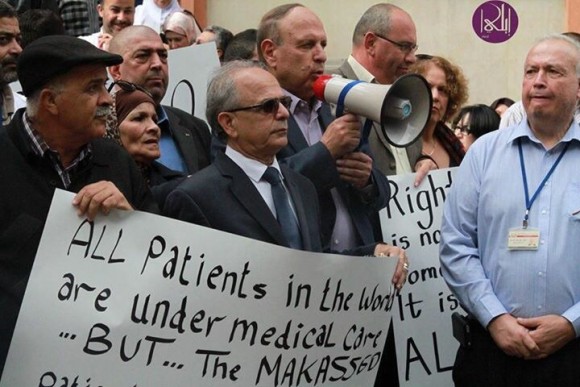 | Doctors and health workers protest at the attack on East Jerusalem's Makassed Hospital - not newsworthy enough for the BBC |