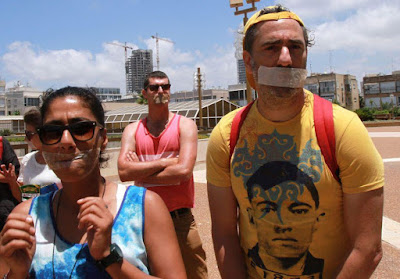 | Israeli artists protesting at the lack of dialogue in Israel - as their funds are cut for not supporting the settlements and Likud's far-right agenda |