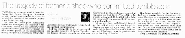 | An article in the Brighton Argus concerning the late Bishop of Gloucester, George Bell |