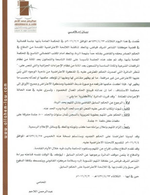 A statement by Fayadh’s attorney, Abdulrahman Al-Lahim, in response to the ruling.