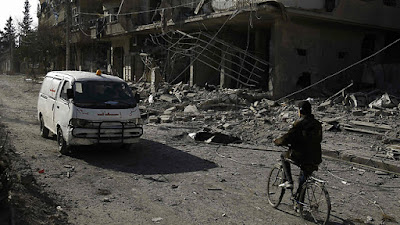 | Ruins in Homs, Syria, seen from a Russian drone |