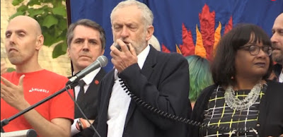 | Corbyn speaks to the rally |