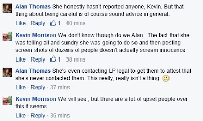 | This is quite clearly a threat to go to the Compliance Unit to people who have engaged with her on FB |