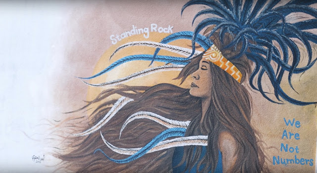 | A mural in solidarity with the protests at Standing Rock created by "We Are Not Numbers" in Gaza. |