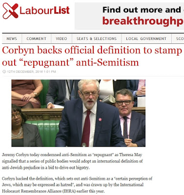 What is staggering, stupefying, unbelievable is that Jeremy Corbyn simply accepted this new definition without demur. It is as if he has learnt no lessons from the past year. Simply repeating 'I condemn anti-Semitism' just encourages those who accuse anti-Zionists of 'anti-Semitism'. Corbyn should know since he himself has been called it enough.