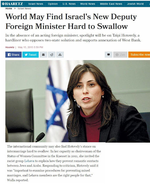 | Tzipi Hotoveli, Theresa May's friend invites Lehava, a fascist group into the Knesset and secures them a grant to prevent mixed marriages |