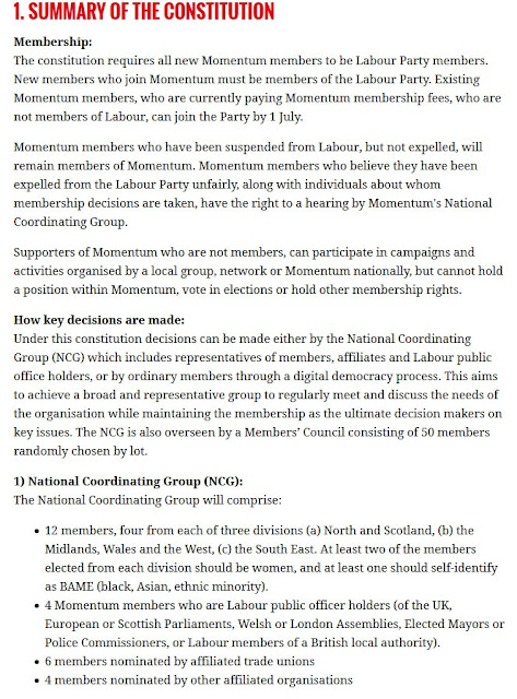 ‘Team Momentum’ also informed us that a Constitutionhad been agreed by the Steering Committee at its last meeting. I have just spoken to a member of the Steering Committee and that is a lie. There was no meeting because Sam Tarry, the TSSA representative on the Committee informed members there were ‘no rooms available’ at TSSA HQ where Momentum is currently based. A Constitution was therefore sent by Lansman’s acronies aka ‘Team Momentum’ to each individual Steering Committee member for a ‘yes’ or ‘no’. This is the democracy that Lansman, Tarry and co. are introducing. No debate, no discussion, either assent or dissent and if the latter then it is punished accordingly.