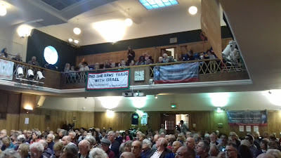 The vote on abandoning support for a 2 States Solution in Palestine was lost by about 2-1 and the call for a more thorough going Review of PSC’s multiple failures during the year by a similar margin. Although we lost the vote it was clear we won the debate. No one could answer the simple question, how can we support a 2 State solution which 2/3 Palestinians have lost faith in? How can we support a 'solution' that every Zionist organisation in this country purports to support? The political incoherence of PSC is staggering. It is addicted to settlements to the exclusion of everything else.